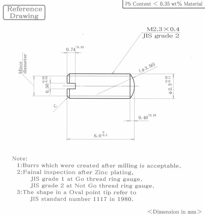 Overall length 6mm slotted set screw sizes chart Nominal diameter : M2, M2.3, M2.5, M3 Free sample click here. Overall length 6mm hexagon socket set screws click here. |